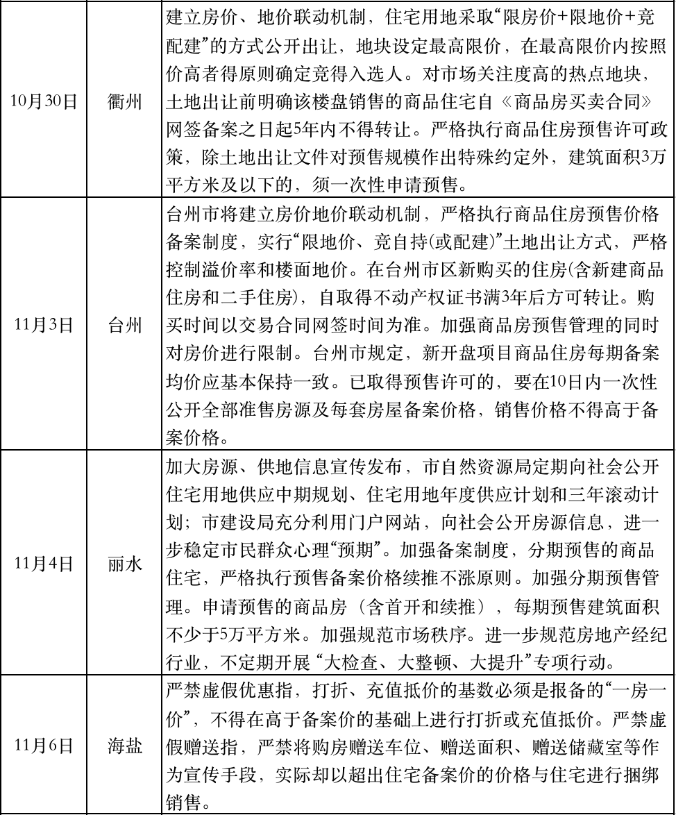 “十四五”規(guī)劃建議發(fā)布的同一天,浙江臺州升級了樓市調(diào)控,規(guī)定在臺州市區(qū)新購買的住房(含新建商品住房和二手住房),自取得不動產(chǎn)權(quán)證書滿3年后方可轉(zhuǎn)讓。麗水緊跟其后明確“四個加強(qiáng)”調(diào)控措施。