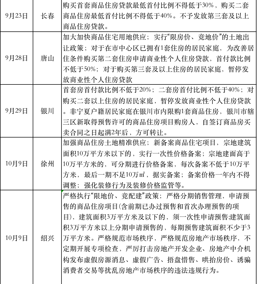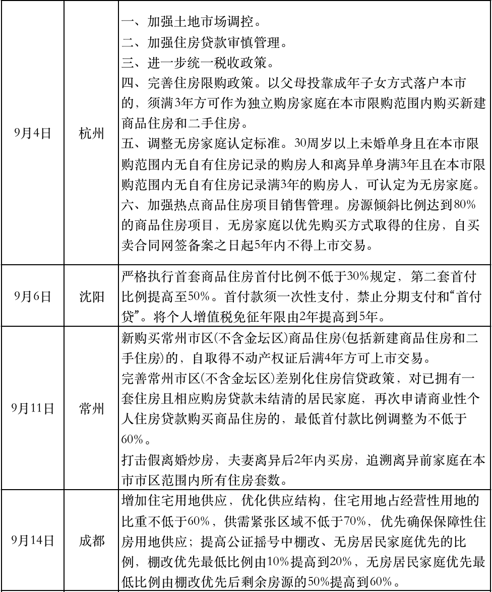 值得注意的是,三季度以來,多個熱點城市出臺樓市調(diào)控背景下,樓市整體平穩(wěn)運行,但三四線城市打補(bǔ)丁政策趨勢依然持續(xù),“房住不炒”全面升級。