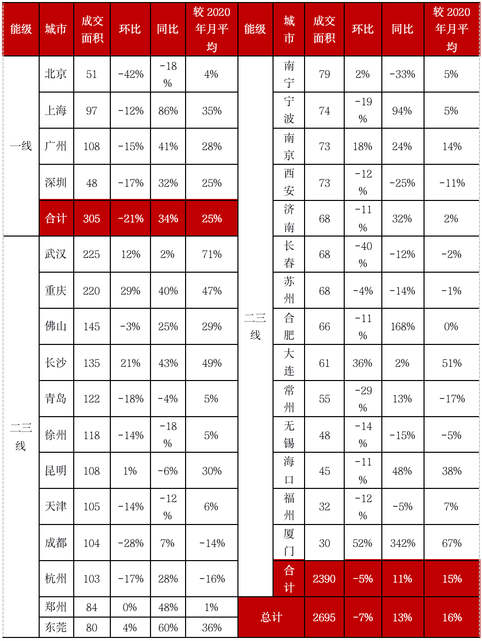 二三線城市成交面積2390萬平方米,環(huán)比下降7%,同比增長13%。從絕對量看,武漢、重慶等整體成交依舊處于二線城市前列,10月成交量均超200萬平方米。從同、環(huán)比變化看,不同城市行情相對獨立:一方面,武漢、重慶、長沙、東莞、南京、大連、廈門等城市成交穩(wěn)步回升,同、環(huán)比齊增;另一方面,青島、徐州、天津、西安、長春、蘇州、無錫、福州等城市成交熱度穩(wěn)步回落,市場表現(xiàn)不及預(yù)期。