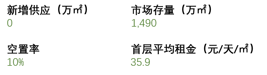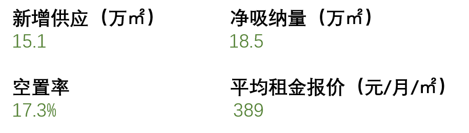 受互聯(lián)網(wǎng)頭部企業(yè)的收縮影響,季內(nèi)整體市場(chǎng)活躍度有所放緩,凈吸納量環(huán)比下降55%至3.1萬(wàn)平方米,空置率上調(diào)至18.9%。