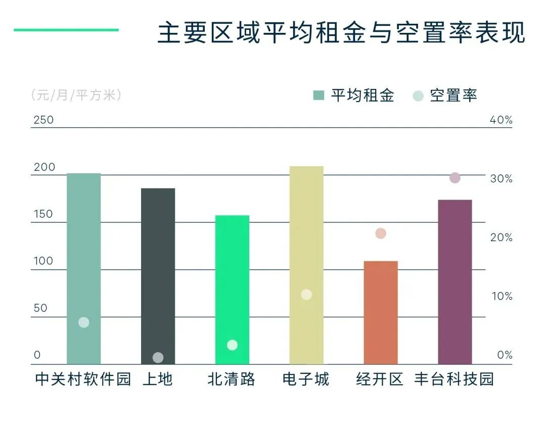 中關(guān)村軟件園子市場(chǎng)受沖擊較大,錄得負(fù)的凈吸納量;而北清路子市場(chǎng)則憑借租金成本優(yōu)勢(shì),空置率持續(xù)下行;上地、東升租賃活躍度保持平穩(wěn)。