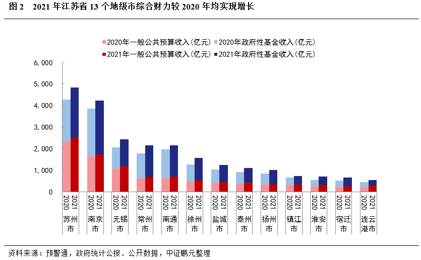 最新數據江蘇省13個地級市和95個區縣級2021年經濟財政債務情況