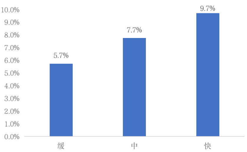 對比不同增速的城市近十年商品住宅成交面積變化來看,“緩增型”城市的市場規(guī)模增長明顯要慢于“快增型”城市,近十年復合增長率僅有5.7%,較“快增型”城市低了4個百分點。
