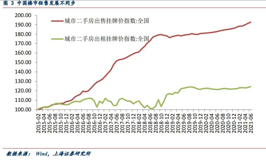 在投資人眼中,使用價值僅是為投資價值實現服務的。房屋出租代表著真實的居住市場,出售則在更大意義上代表著住房投資市場,兩者間的分離發展,意味著樓市泡沫擴大和兩個市場的背離。