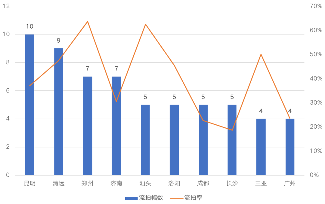 重點城市中土地流拍幅數TOP10城市