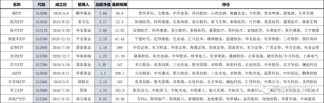 每只板塊基金的重點(diǎn)持倉,我也都羅列出來,我知道很多股民連自己收到的票是哪個行業(yè)都不大清楚,可以在里面找找,認(rèn)認(rèn)家門。