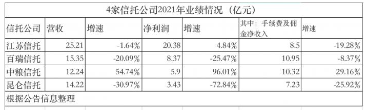 來(lái)自21世紀(jì)經(jīng)濟(jì)報(bào)道顯示,已有4家信托公司財(cái)報(bào)同步在相關(guān)上市公司公告中,分別為、、、。作為頭部信托公司,江蘇的數(shù)據(jù)大概是沒(méi)有什么問(wèn)題的