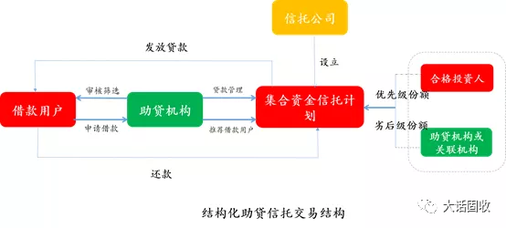 在這種“助貸”模式中,誰能借到錢,借錢做什么,借多少錢這幾個(gè)關(guān)鍵問題由助貸機(jī)構(gòu)把握;助貸機(jī)構(gòu)審查后推薦給信托計(jì)劃放款,回款時(shí)也是回流到專門的歸集戶。
