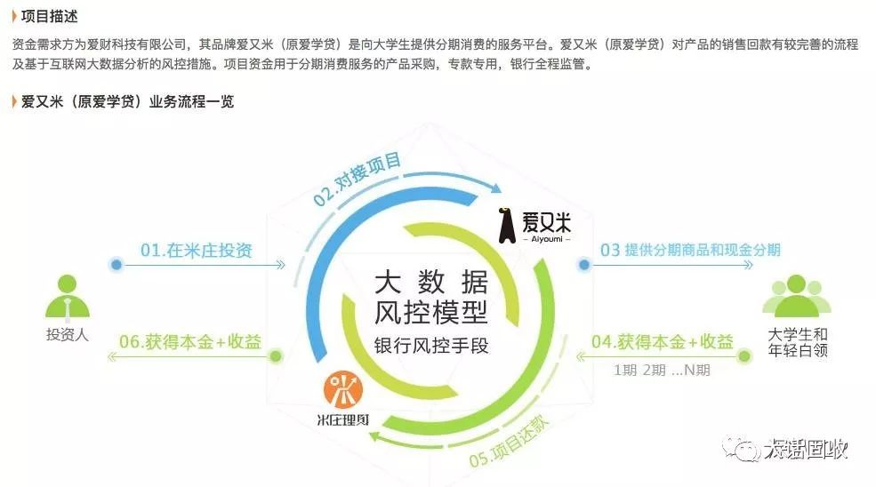 二是助貸機(jī)構(gòu)本身的可靠性。助貸模式,信托公司只是募集資金,貸不貸基本掌握在助貸機(jī)構(gòu)手里,那如果助貸機(jī)構(gòu)想要套這個(gè)錢,會(huì)不會(huì)收集符合條件的借款人,然后歸集資金套現(xiàn)呢?下圖是愛財(cái)集團(tuán)宣傳的自身業(yè)務(wù)模式: