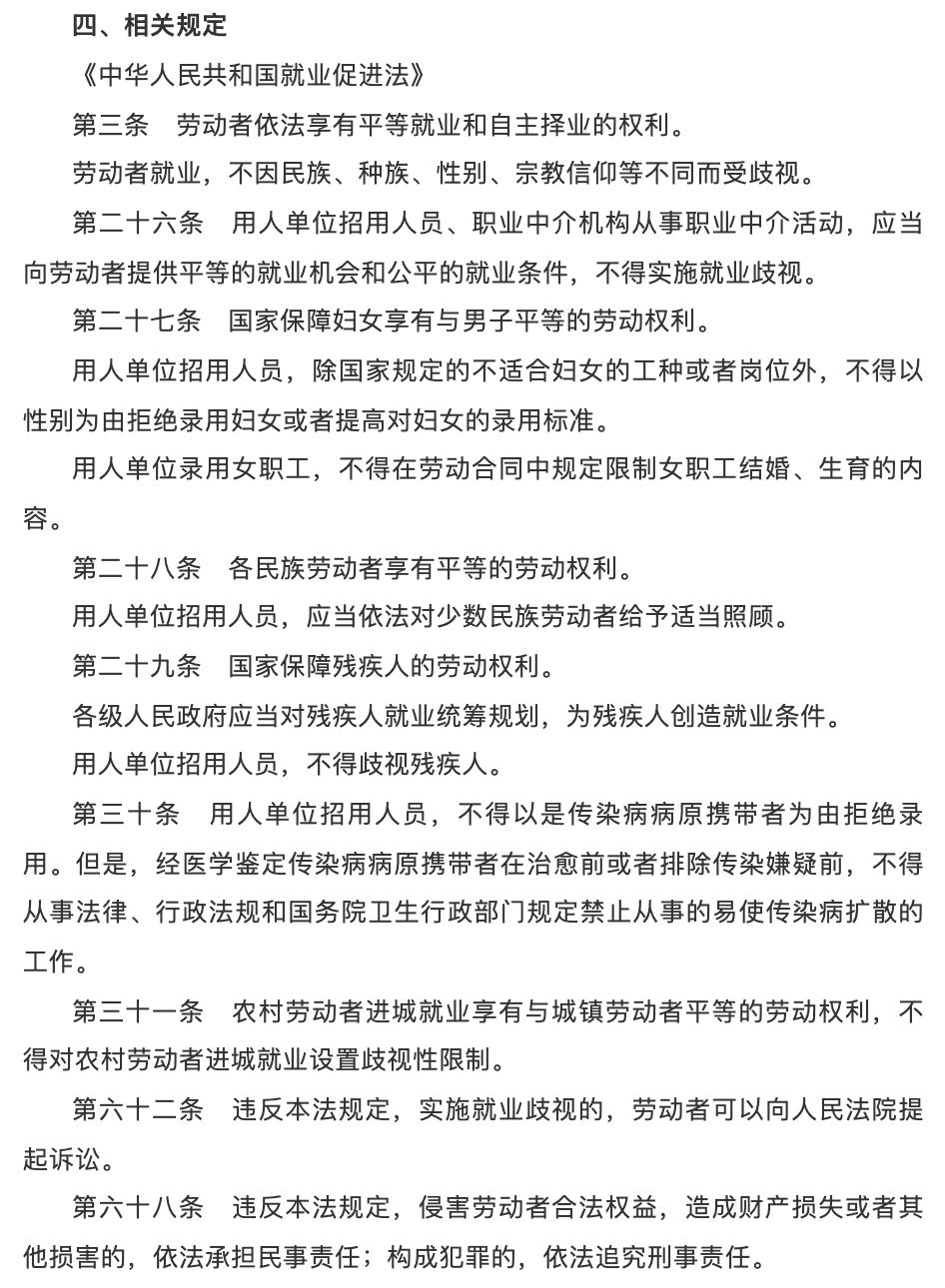 就業(yè)歧視相關法規(guī):