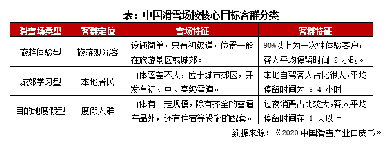 冰雪場地主要涵蓋滑冰場與滑雪場等形態(tài),由于當(dāng)前新增滑冰場多為商業(yè)綜合體形式,基本交由冰場品牌方進(jìn)行承租運營(少數(shù)由商業(yè)體自建并自主運營,如華潤旗下的冰紛萬象系列),所以暫不在本文的參照范圍內(nèi)。國內(nèi)滑雪場按核心目標(biāo)客群可分為三類:旅游體驗型、城郊學(xué)習(xí)型及目的地度假型,據(jù)《2020中國滑雪產(chǎn)業(yè)白皮書》數(shù)據(jù)顯示三類雪場占比75%、22%及3%,新建雪場中目的地滑雪度假區(qū)呈上升趨勢,而旅游體驗型滑雪場則出現(xiàn)下滑趨勢。