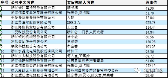 圖一:臺州市上市公司及其實控人名單