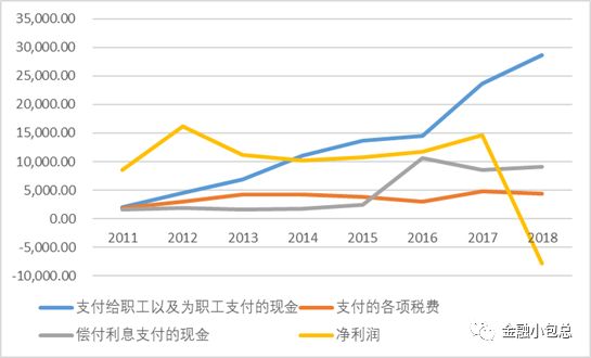 以ST中新為例,這五年來其凈利潤并沒有顯著提高,但各種顯性成本,如人工成本、各項稅費和利息支出卻急劇增加,尤其是人工成本,ST中新用工成本從2011年的人均月薪2469元增長到了2018年的11613元,7年間增長了五倍,而其從事的電子業代工制造本身是毛利率極低的行業,對成本非常敏感。