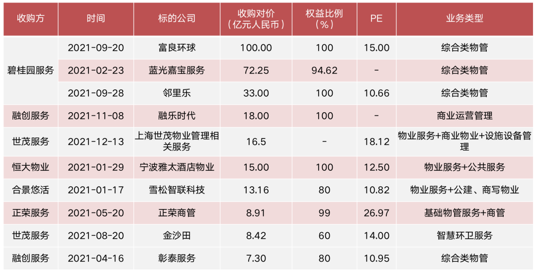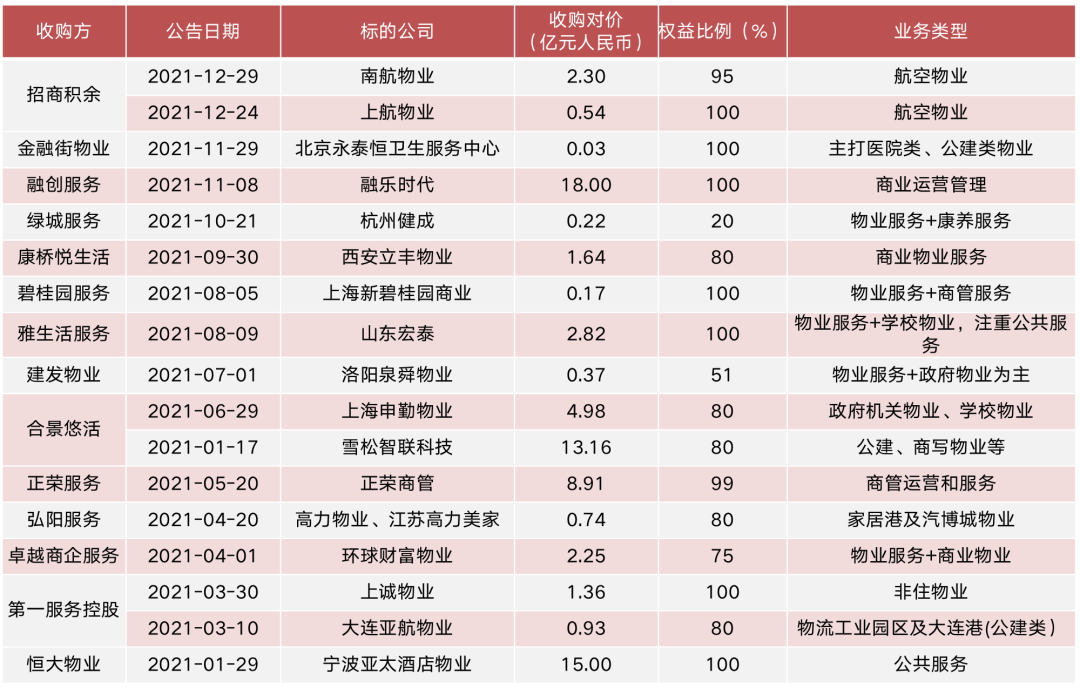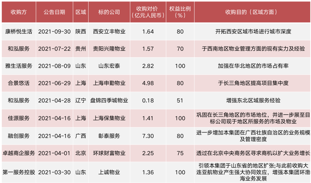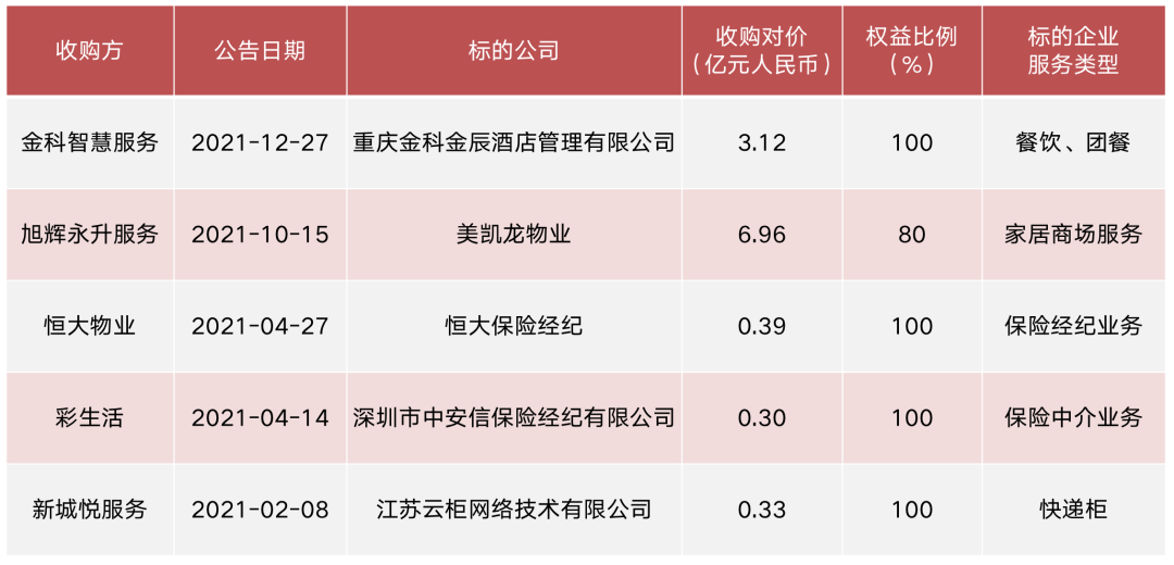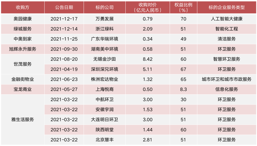 圖:2021年以來上市物企在增值服務(wù)領(lǐng)域收并購事項(xiàng)一覽