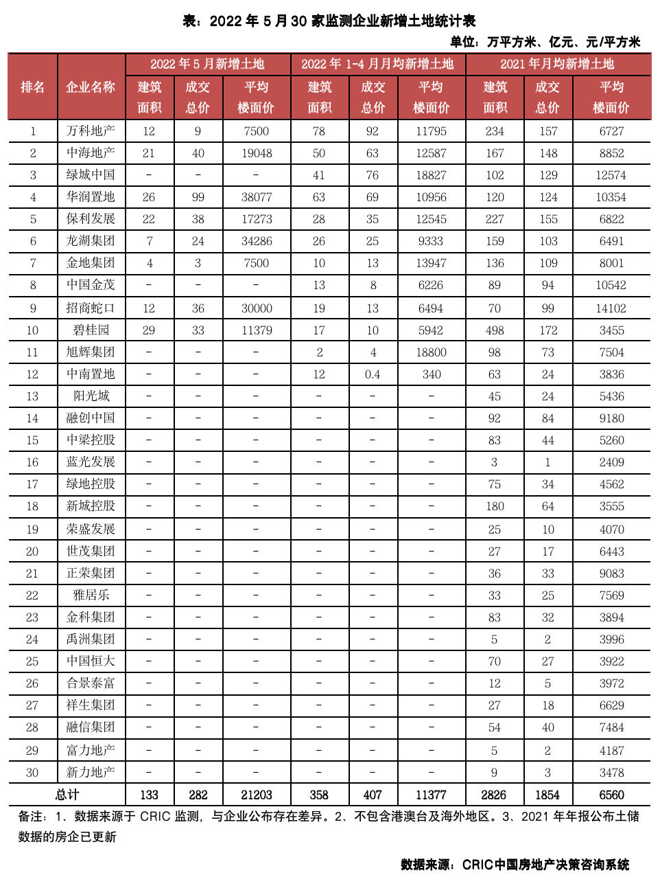 2、本月監測房企中僅8家投資拿地,規模化國企、央企是主力,民企投資幾乎停滯。整體來看,30家重點監測房企中,拿地依然是國企、央企等老面孔,僅龍湖、碧桂園等民企在5月份有投資動作。一方面是受到企業自身現金流影響,另一方面與廣州、北京、蘇州等土拍價格較高不無關系。