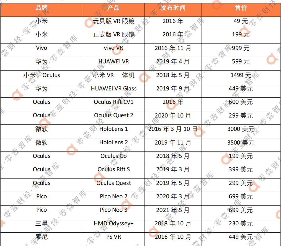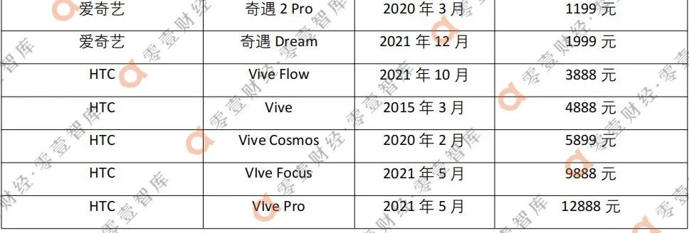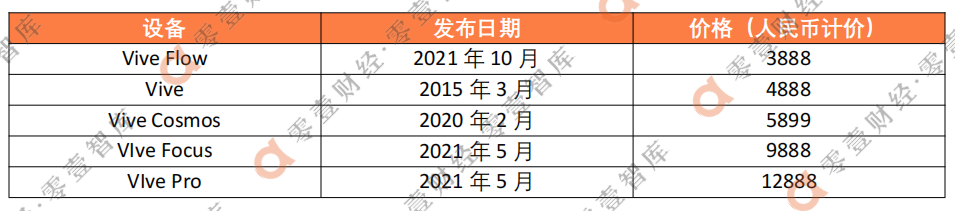 HTC過去以智能手機等硬件而為人所知。實際上HTC也有推出虛擬現實相關的硬件,如下表所示。