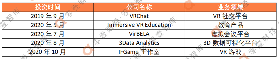 HTC也通過投資的方式布局了業務與元宇宙相關的公司。具體的公司如下下表所示。