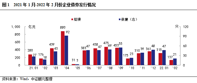 2022年2月企業(yè)債券發(fā)行21只,發(fā)行規(guī)模136.67億元,較上月分別下降55%和57%,較上年同期分別增長(zhǎng)17%和下降22%。本月受春節(jié)影響,發(fā)行規(guī)模有所下降。