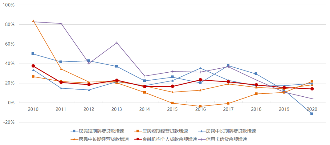 金融機構居民部門信貸增速(2013年-2020年)