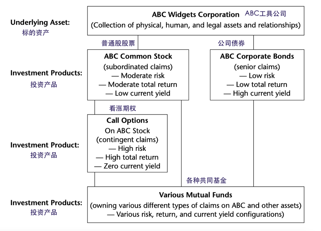 為了匹配不同投資者的需求,投資行業創造了各種投資產品和工具。在這個系統中,分為兩部分:標的資產和投資產品或工具。