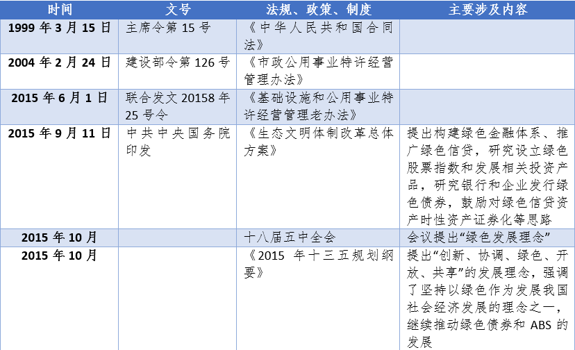 能源基礎(chǔ)設(shè)施是國家關(guān)注的重點(diǎn)項(xiàng)目,對如何可持續(xù)的發(fā)展能源基礎(chǔ)設(shè)施建議以匹配快速增長的能源消費(fèi)和龐大的工業(yè)投資尤為重要。“一帶一路”戰(zhàn)略的提出以及城鎮(zhèn)加速化帶來的公共基礎(chǔ)設(shè)施共需壓力,促使經(jīng)濟(jì)發(fā)展對資金需求不斷增加,如何拓寬融資渠道、創(chuàng)新融資模式成為研究的新課題。為了更好的促進(jìn)能源基礎(chǔ)設(shè)施建設(shè),綠色金融應(yīng)運(yùn)而生,我國政府在各個(gè)行業(yè)廣泛推廣PPP模式及合同能源管理等綠色金融模式,并出臺了一些列輔助這些金融模式工作開展的文件與通知。