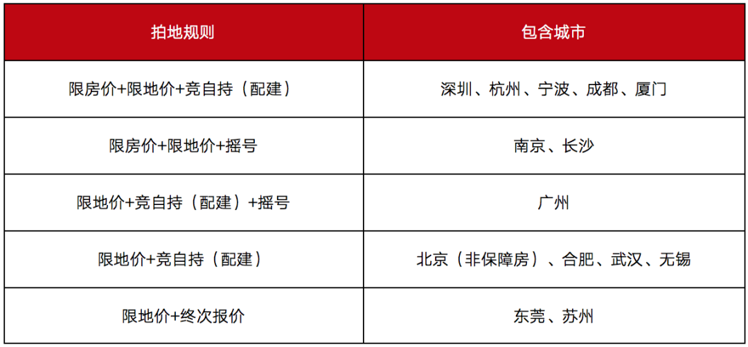 表:典型熱點城市當前拍地規則