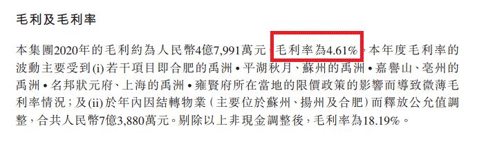 本年度毛利率的波動主要受到若干項(xiàng)目即合肥的禹洲 ? 平湖秋月、蘇州的禹洲 ? 嘉譽(yù)山、亳州的禹洲 ? 名邦狀元府、上海的禹洲 ? 雍賢府所在當(dāng)?shù)氐南迌r政策的影響而導(dǎo)致微薄毛利率情況;及于年內(nèi)因結(jié)轉(zhuǎn)物業(yè)(主要位于蘇州、揚(yáng)州及合肥)而釋放公允值調(diào)整,合共人民幣7億3,880萬元。剔除以上非現(xiàn)金調(diào)整后,毛利率為18.19%。