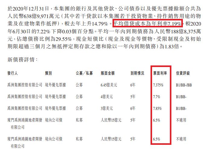 根據(jù)禹洲集團(tuán)2020年的財(cái)報披露,2020年末,各種有息負(fù)債600多億元,比2019年末上升14.79%。