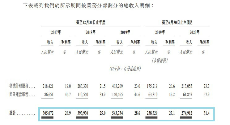 2017年禹佳生活服務(wù)收入3.05億元,2018年3.94億元,2019年5.44億元。復(fù)合增長率33.5%,還不錯。