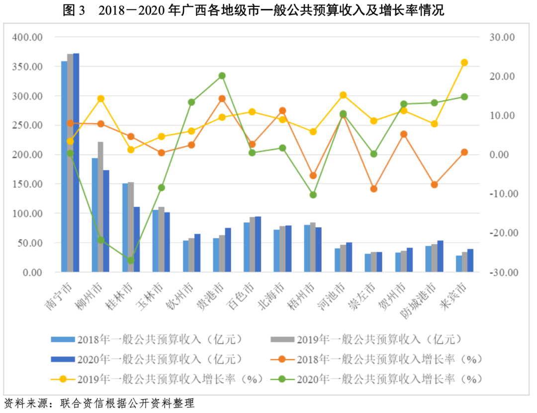 3.廣西各地級市財政收入對發債城投企業債務的支持保障能力