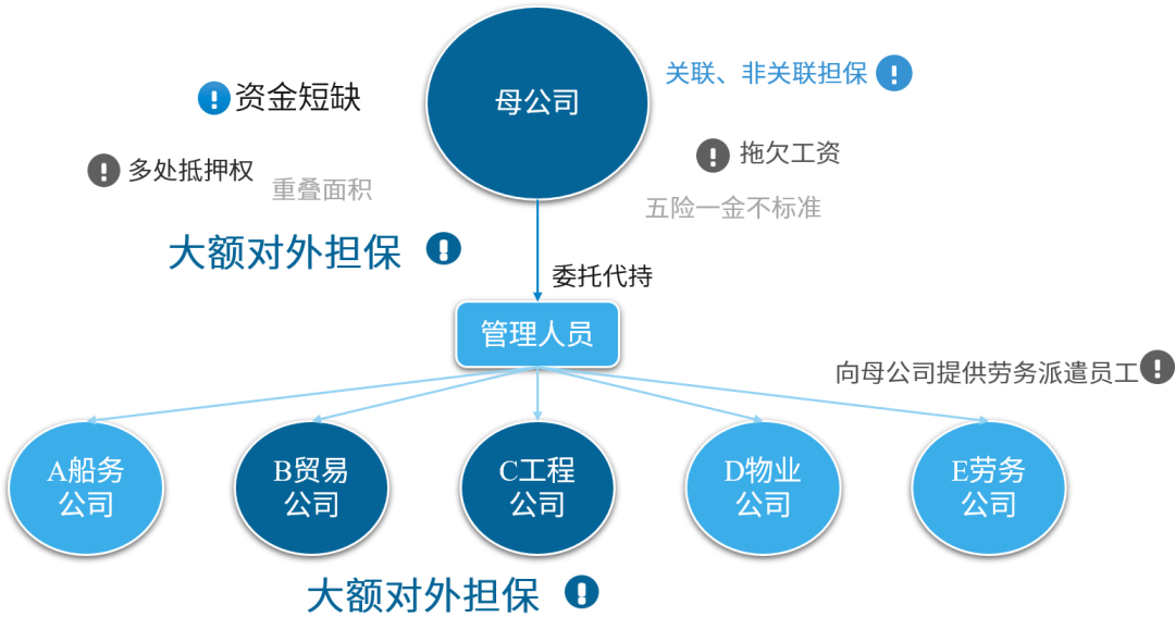 (5)目標公司對外擔保數(shù)額巨大,且 B 貿(mào)易公司、C 工程公司也有大額對外擔保。
