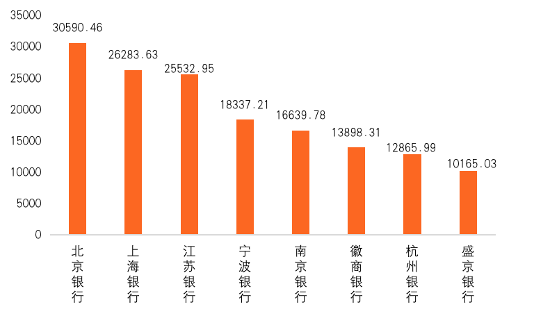 圖 1:2021上半年總資產超萬億的城商行排名(單位:億元)