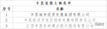 豐縣的發(fā)債主體主要有3家,兩家城投、1家銀行,分比為:豐縣城市投資發(fā)展集團(tuán)有限公司(以下簡(jiǎn)稱“豐縣城投”)、豐縣經(jīng)濟(jì)開發(fā)區(qū)投資發(fā)展有限責(zé)任公司(以下簡(jiǎn)稱“豐縣經(jīng)開”)和江蘇豐縣農(nóng)村商業(yè)銀行股份有限公司(以下簡(jiǎn)稱“豐縣農(nóng)商”)。