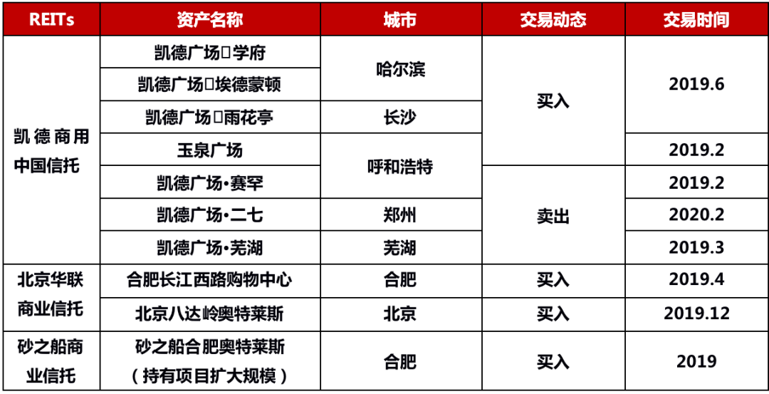 購物中心REITs近兩年資產買賣情況