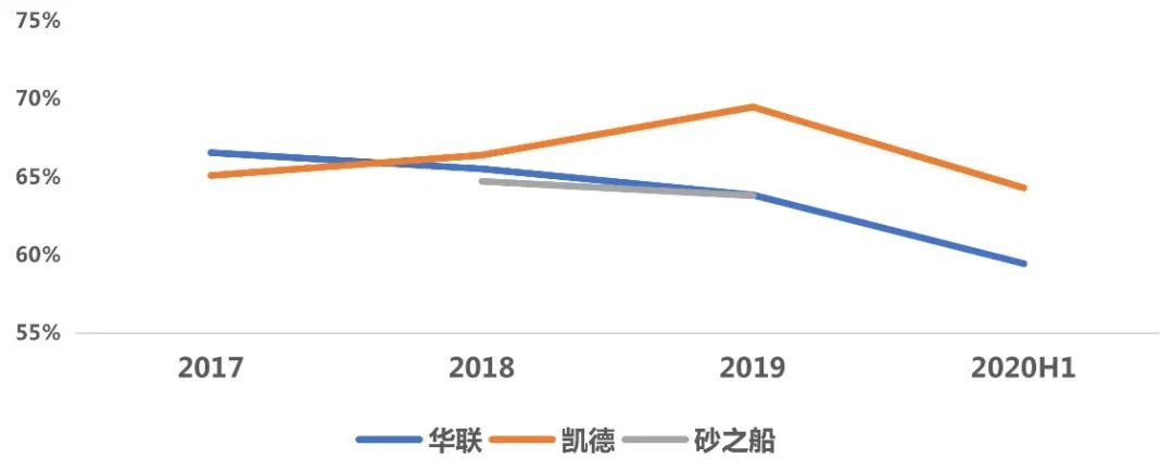 2、運營效率:凈物業收益率均在6成左右