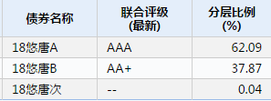 其二,完全不出表,這種情況比較常見。實踐中,ABS往往設定“優先/次級結構”、“原始權益人差額補足”、“母公司/關聯方擔?!钡仍鲂艞l款,在這些增信下,往往是不出表或者部分出表。如果是全額差額補足、或者自己持有的次級占整個ABS規模的一定比例(實際操作中一般以10%為限)以上,則完全不能出表,如果低于這個比例,則可按繼續涉入的原則做到部分出表。以兆泰集團發行的悠唐中心CMBS為例(分層情況見表1),雖然次級只有0.04%的份額,但因為原始權益人兆泰集團對ABS提供差補承諾,則此基礎資產也無法出表。那么,發行ABS后,其資產負債表將體現為貨幣資金增加,其它非流動負債、其它流動負債或一年內到期的非流動負債增加(相當于一種存在抵質押的債權融資)。