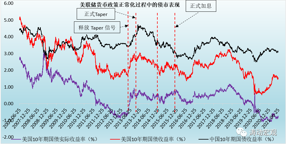 1、在美聯(lián)儲(chǔ)向市場釋放Taper信號(hào)和正式啟動(dòng)Taper過程中,美國10年期國債收益率趨于快于上行。