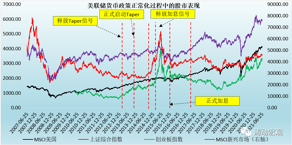 2、而在Taper以及加息的預(yù)期過程中,受資本外流、本幣貶值等因素影響,新興市場股市的波動(dòng)幅度有所擴(kuò)大,且傾向于下挫。