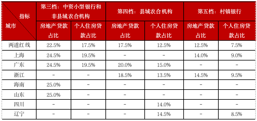 表:部分省市上調(diào)中小銀行房貸占比上限