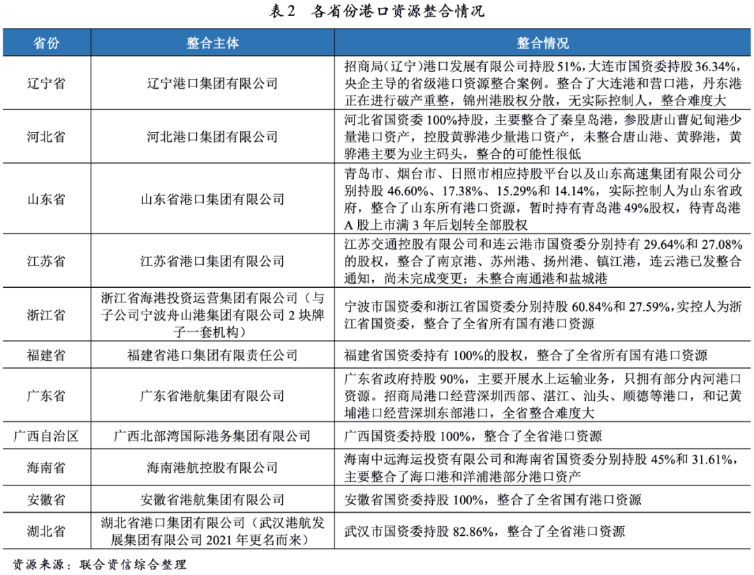 目前,“一省一港”的行業(yè)格局基本形成,但港口集團(tuán)內(nèi)部資源整合仍有望持續(xù)深化。