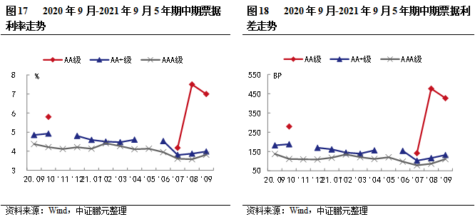 七、9月銀行間市場發行利率高位上升,利差呈現分化,中票利差走擴,短融利差漲跌互現