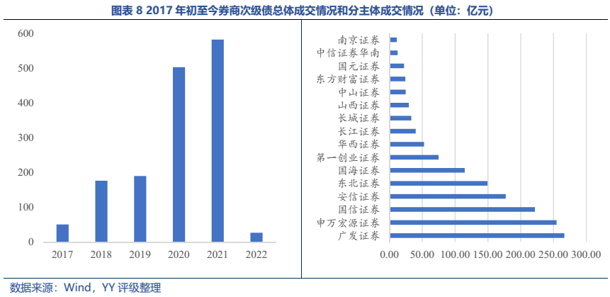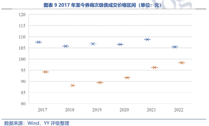 供需格局方面,券商作為重要金融資源之一,多為央企或地方政府實控,承擔著擴容資本市場和提高直接融資比重的使命;歷史來看,監管對以往違規操作和風險暴露券商的處置落地整體較為穩妥且以警示為主,券商持續經營假設較為成立。因此,作為唯一可用于補充凈資本的債券,券商次級債供給規模預計將維持較高水平;而主體的持續經營假設也賦予了其債券產品較厚的安全邊際,高于中部市級城投和浙江縣級城投的收益率也帶來一定性價比優勢,預計后續配置熱情也將持續。