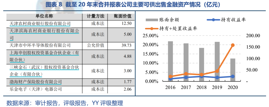 公司為天津市整合級國資運營平臺,子公司股權(quán)多依賴劃轉(zhuǎn)等,實際掌控力偏弱;此外區(qū)域為了化解泰達(dá)的債務(wù)風(fēng)險,將公司股東津聯(lián)投資控股100%股權(quán)劃入泰達(dá)控股下。公司混改的股權(quán)轉(zhuǎn)讓款約90億元流向泰達(dá),而泰達(dá)自身的風(fēng)險警報尚未解除,對公司資質(zhì)有一定拖累。