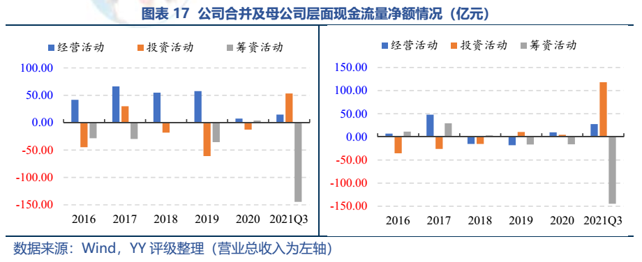 就資產(chǎn)支撐力度而言,母公司層面短期極限變現(xiàn)可覆蓋一年內(nèi)到期的債券,從債券品種和余額分布來看,潛在的擾動窗口期是1‐3年內(nèi)期限(88.80億元,含行權(quán)),存在較大體量沖擊。