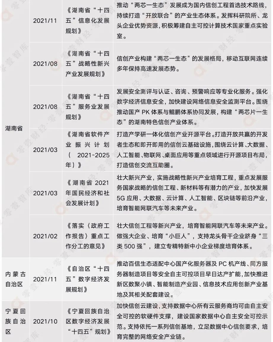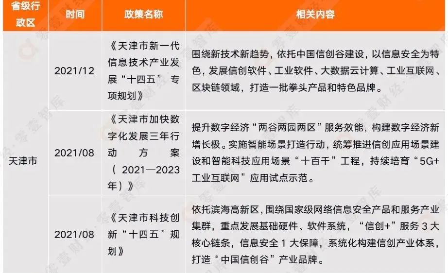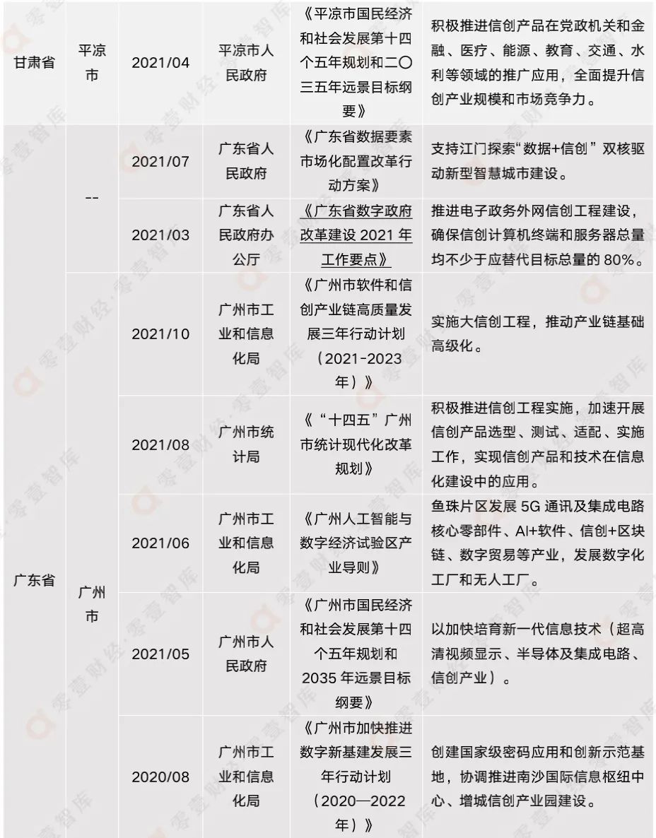 附錄二:全國各省市信創相關政策匯總(截至2021年12月)