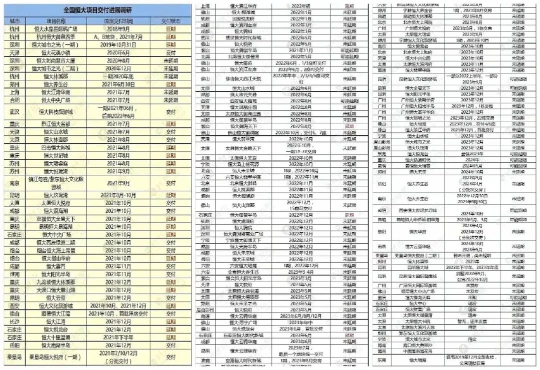因為房地產行業的預售制,恒大的樓盤項目交付多集中在2022-2024年期間,此外有39個樓盤項目交付時間在2021年年底之前。