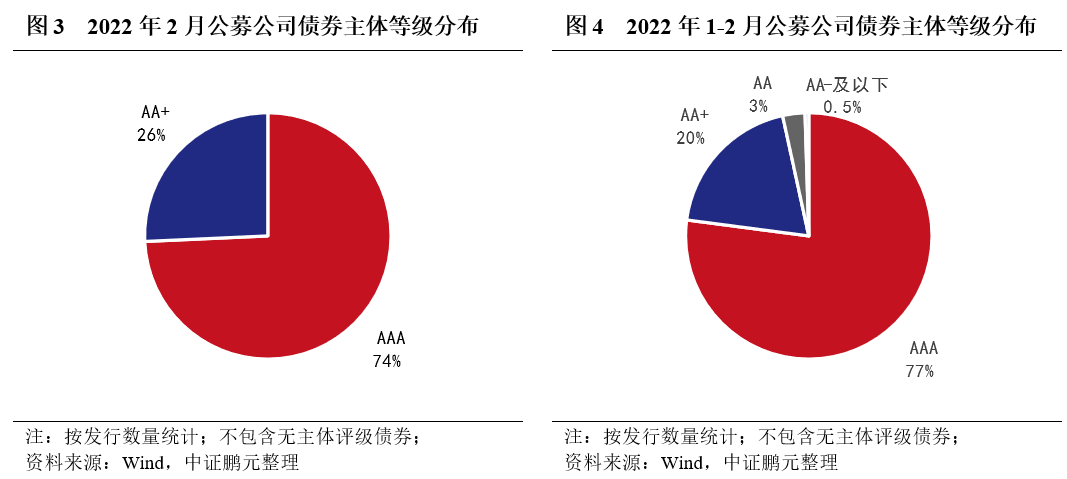 3. 2月份交易所公司債券主體評(píng)級(jí)以中高等級(jí)為主,信用重心上移