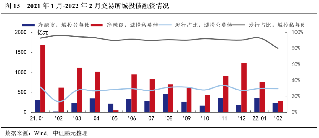 1. 2月份交易所城投債占比下降,私募債城投凈融資規(guī)模下降