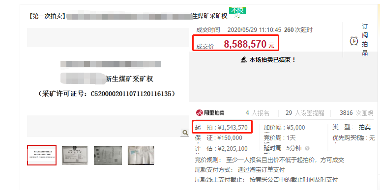 在我們檢索過程中發(fā)現(xiàn),被執(zhí)行人的探礦權(quán)、采礦權(quán)也有較高的價(jià)值,從普通的沙石礦到昂貴的煤礦、有色金屬礦等,相應(yīng)的探礦權(quán)、采礦權(quán)均有成功處置的記錄。