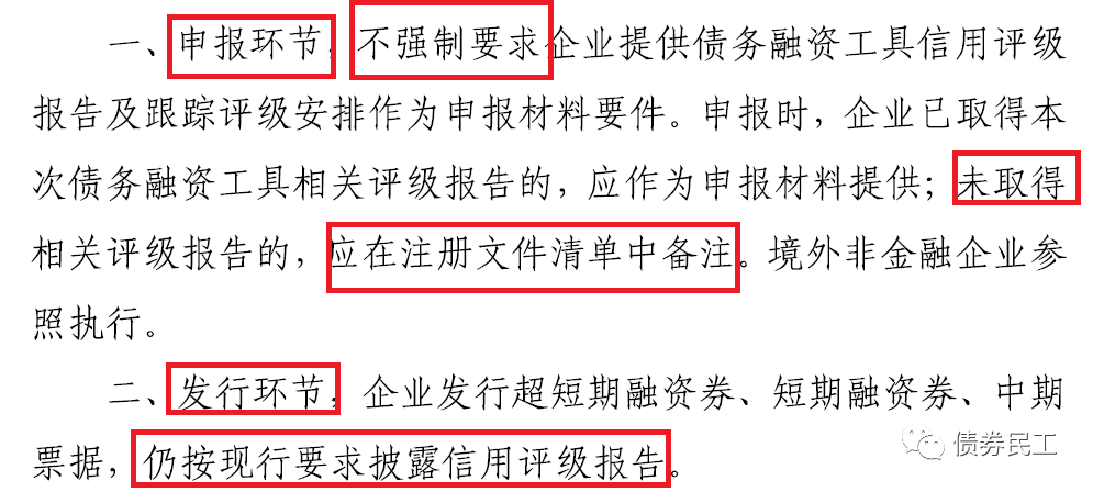 按照交易商協會之前的監管政策,公開發行的債務融資工具(中期票據、短期融資券和超短期融資券),在注冊環節需要提交評級報告作為申報材料。此次新規出臺之后,可以將債務融資工具企業評級選擇權交予市場決定。